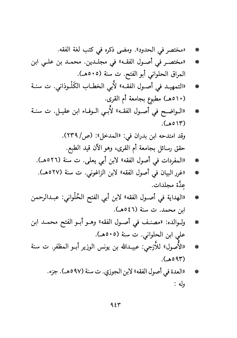 - " التمهيد في أصول الفقه " لأبي الخطاب الكَلْوذاني ت سنة (٥١٠ هـ) مطبوع بجامعة أم القرى.