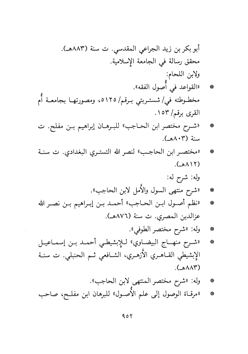 أبو بكر بن زيد الجراعي المقدسي ت سنة (٨٨٣ هـ) .