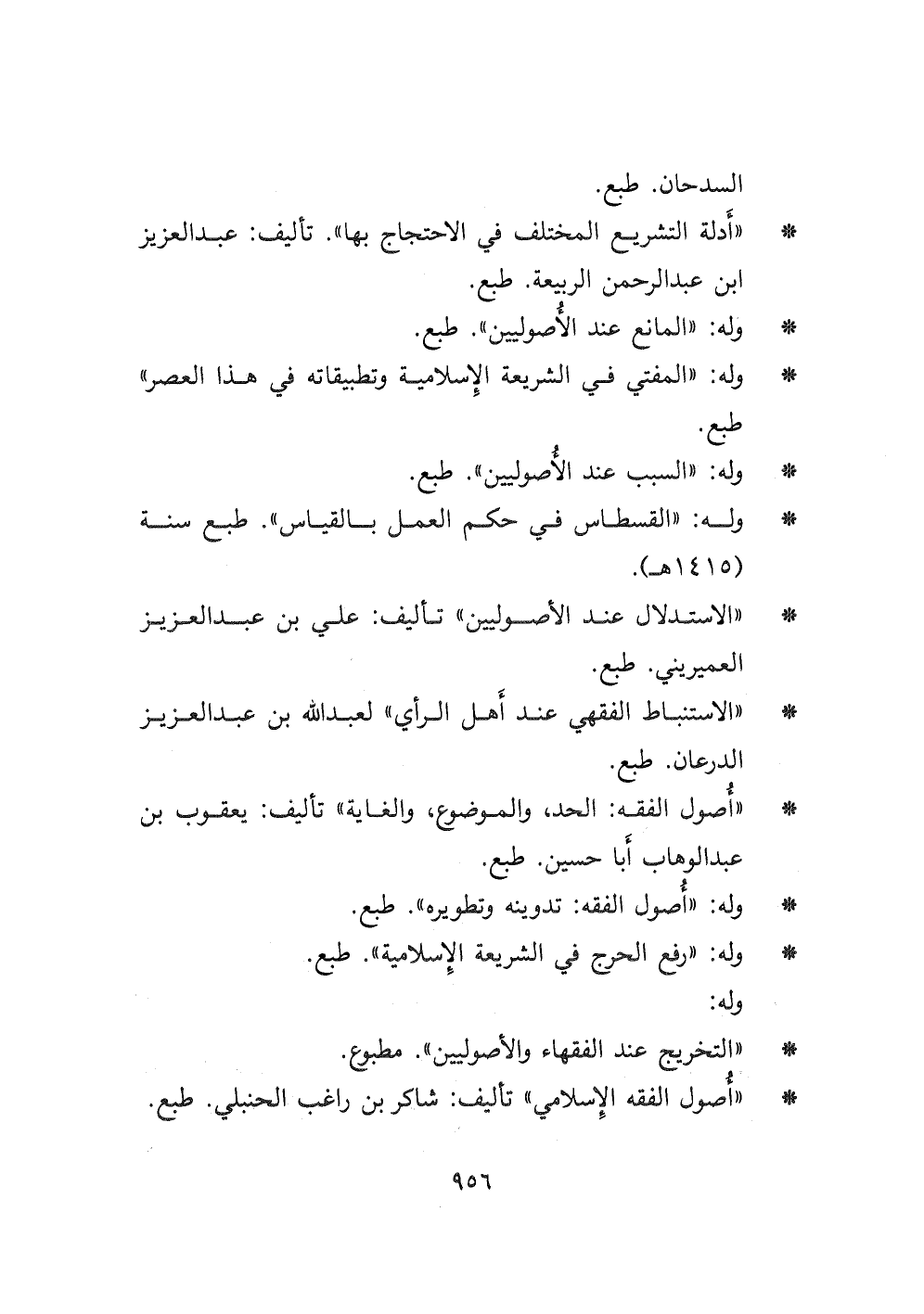 - " أدلة التشريع المختلف في الاحتجاج بها ". تأليف: عبد العزيز ابن عبد الرحمن الربيعة. طبع.