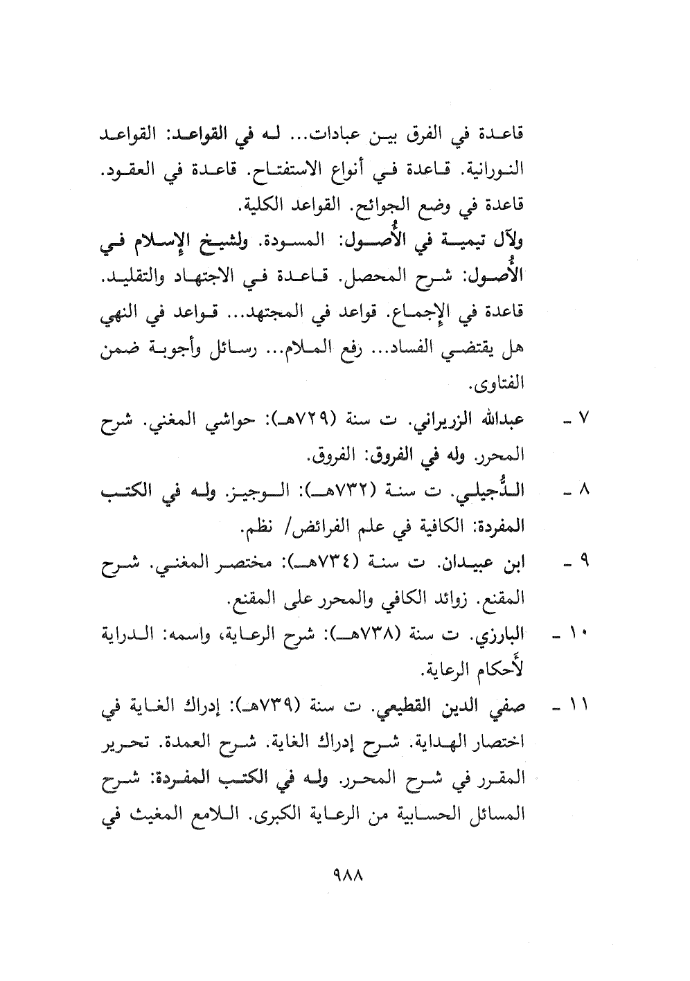 ١٠- صفي الدين القطيعي ت سنة (٧٣٩ هـ) : إدراك الغاية في اختصار الهداية. شرح إدراك الغاية. شرح العمدة. تحرير المقرر في شرح المحرر وله في الكتب المفردة: شرح المسائل الحسابية من الرعاية الكبرى. اللامع المغيث في