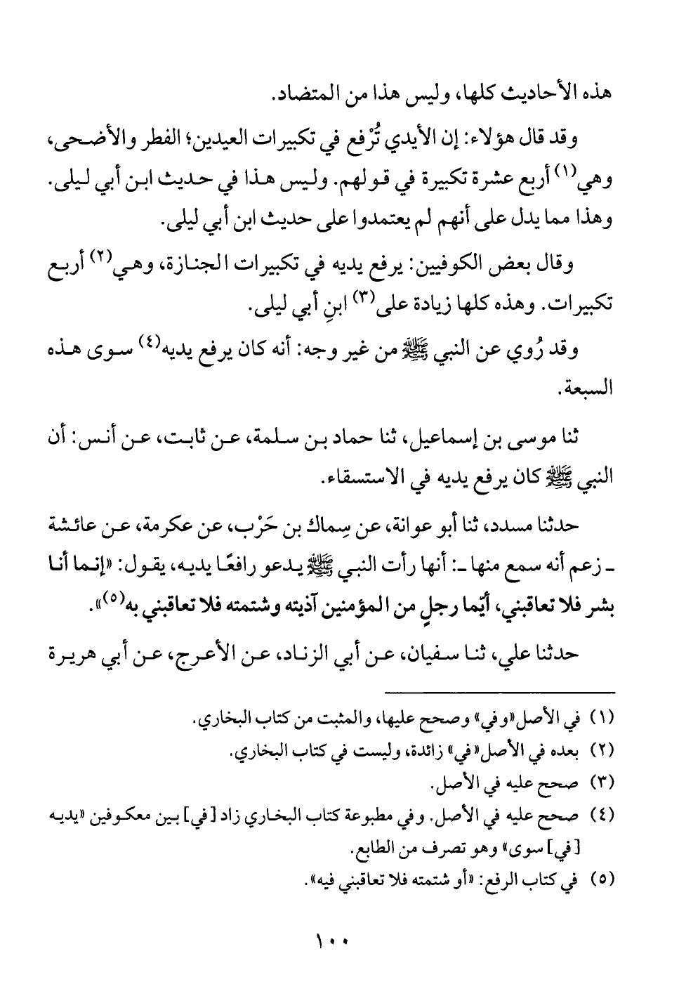 وقد رُوي عن النبي صَلَّى اللهُ عَلَيْهِ وَسَلَّمَ من غير وجه: أنه كان يرفع يديه (4) سوى هذه