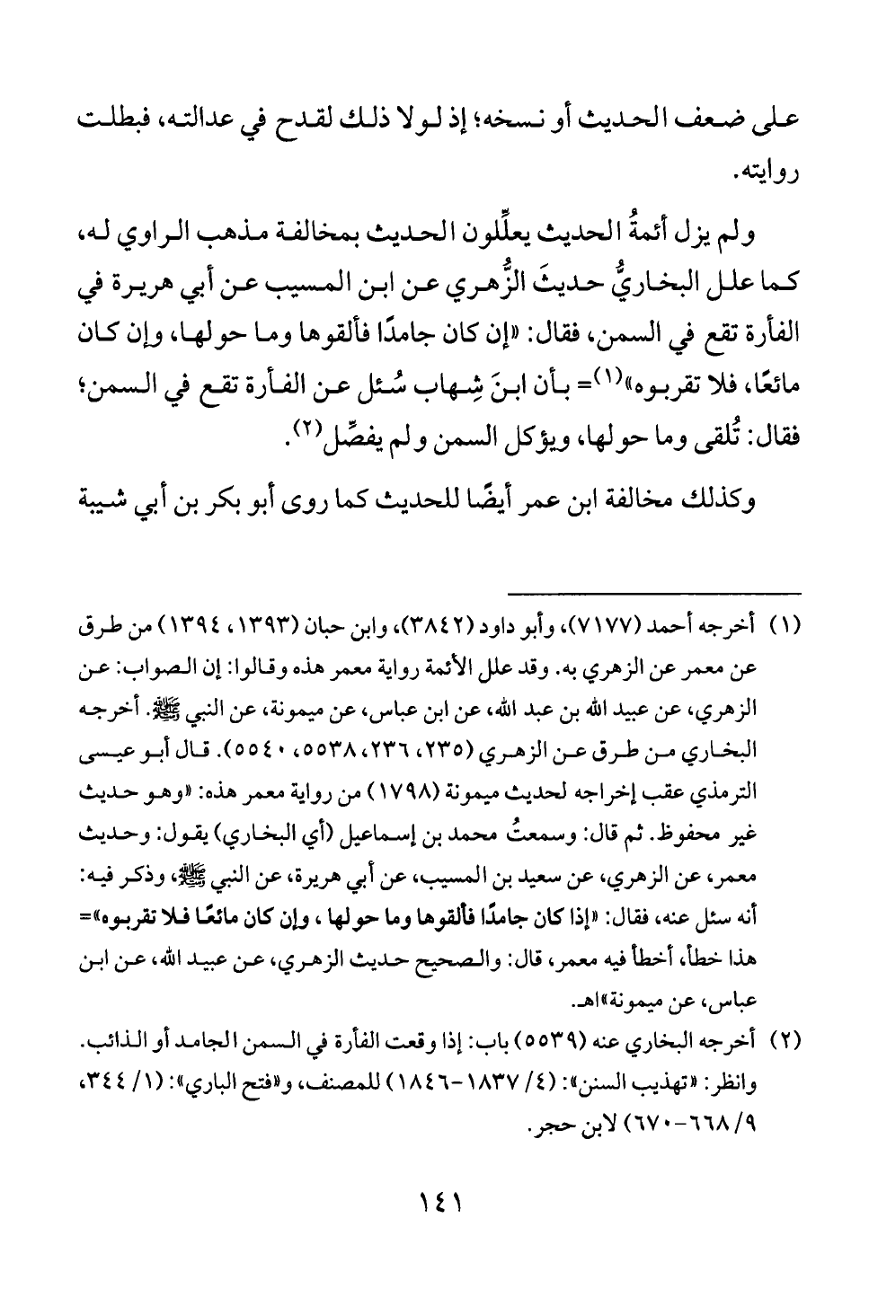 مائعًا، فلا تقربوه» (1) = بأن ابنَ شِهاب سُئل عن الفأرة تقع في السمن؛