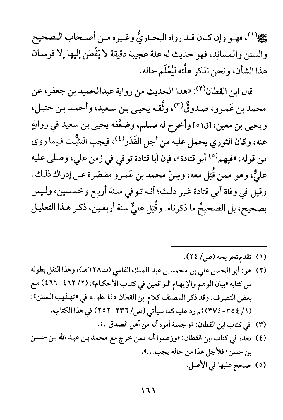 قال ابن القطان (2): «هذا الحديث من رواية عبدالحميد بن جعفر، عن