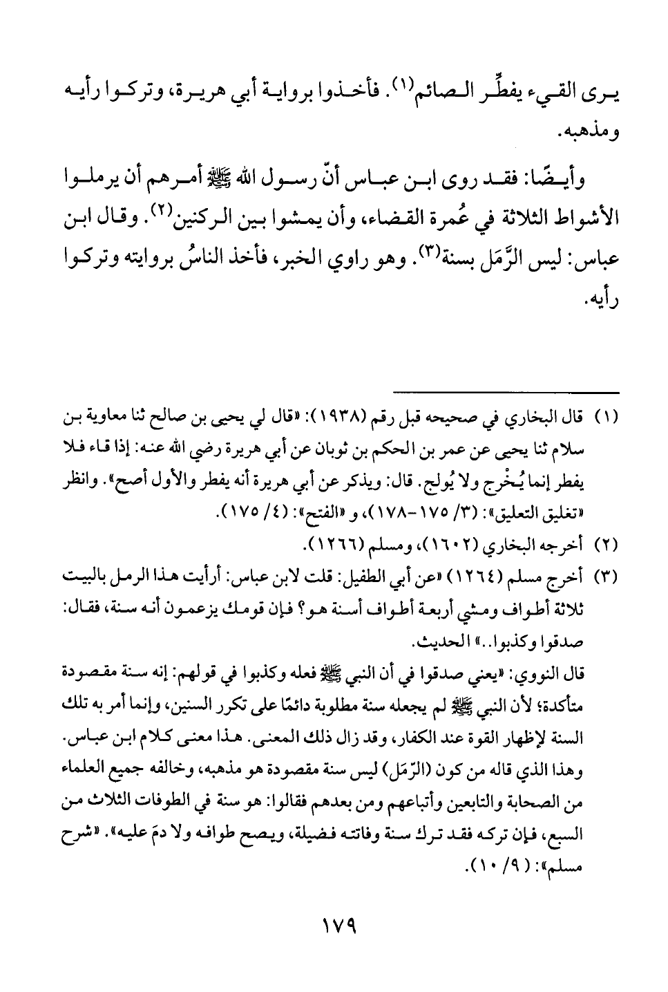 عباس: ليس الرَّمَل بسنة (3). وهو راوي الخبر، فأخذ الناسُ بروايته وتركوا
