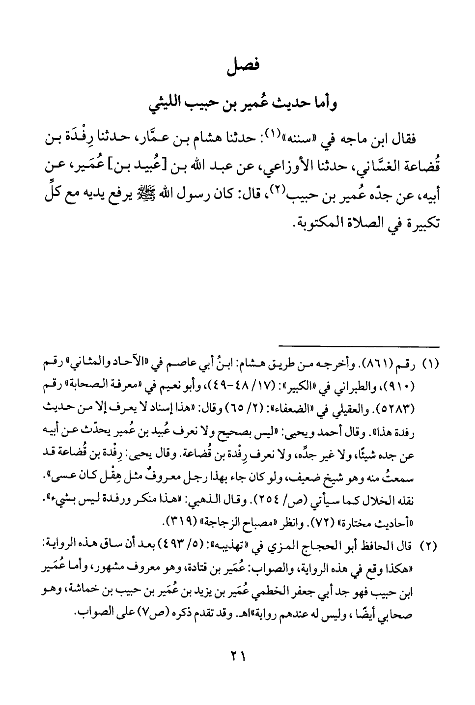 أبيه، عن جدّه عُمير بن حبيب (2)، قال: كان رسول الله صَلَّى اللهُ عَلَيْهِ وَسَلَّمَ يرفع يديه مع كلِّ