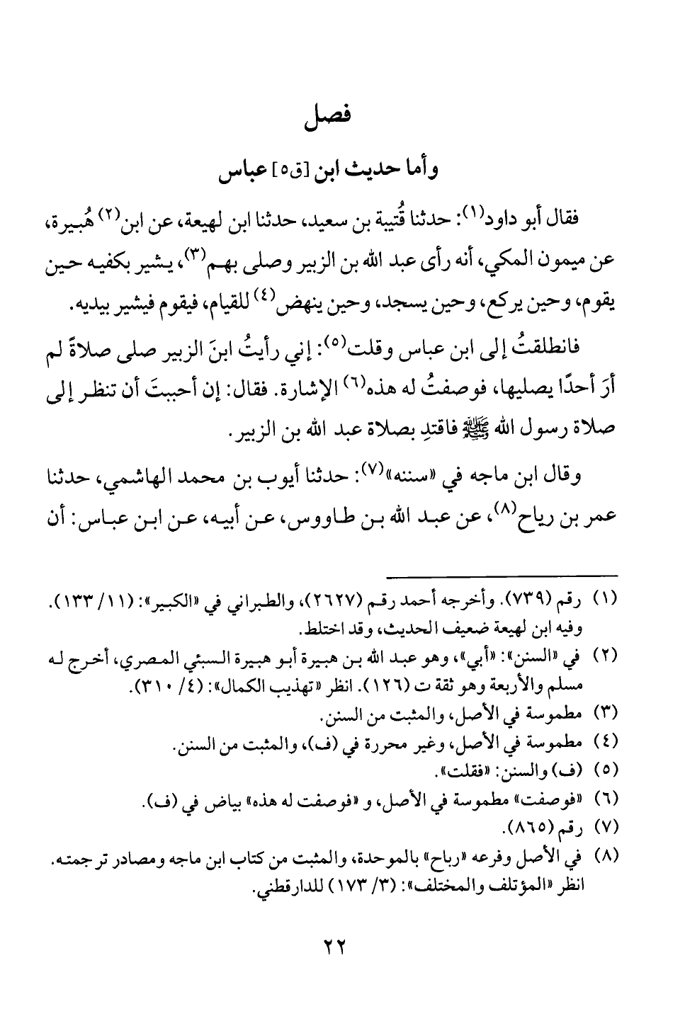 فانطلقتُ إلى ابن عباس وقلت (5): إني رأيتُ ابنَ الزبير صلى صلاةً لم