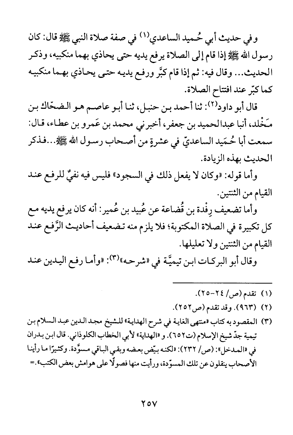 وقال أبو البركات ابن تيميَّة في «شرحه» (3): «وأما رفع اليدين عند