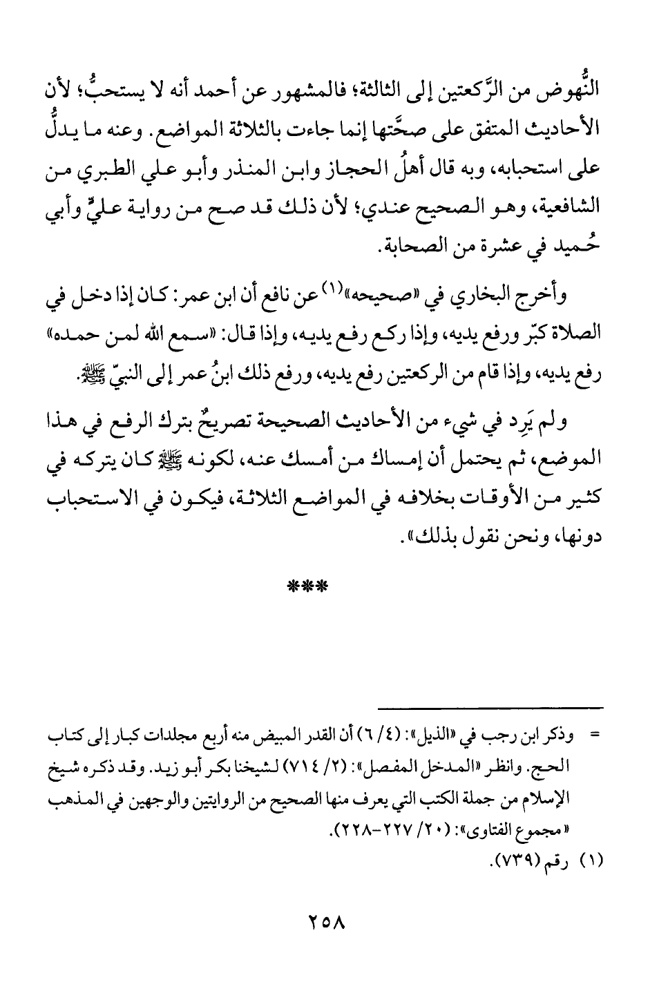 ولم يَرِد في شيء من الأحاديث الصحيحة تصريحٌ بترك الرفع في هذا