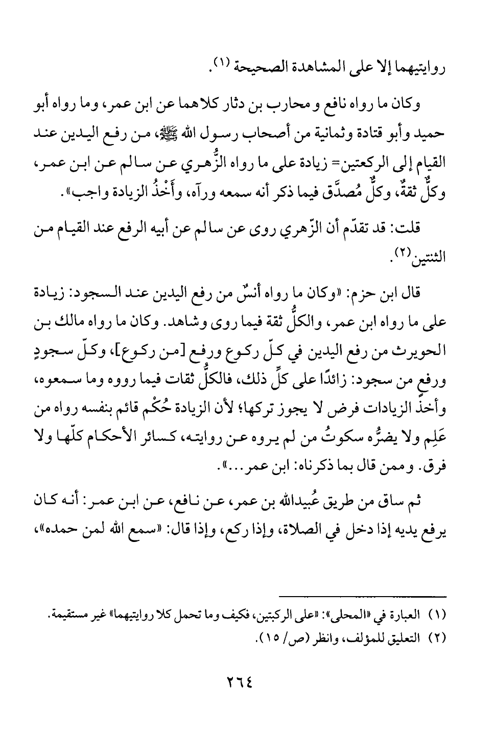 قلت: قد تقدّم أن الزّهري روى عن سالم عن أبيه الرفع عند القيام من