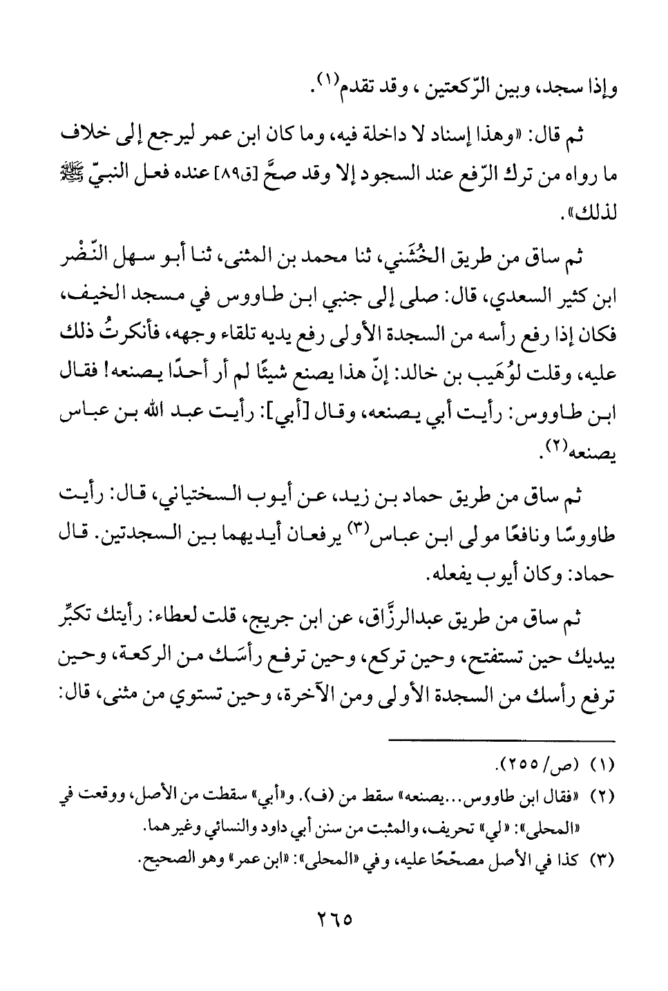 طاووسًا ونافعًا مولى ابن عباس (3) يرفعان أيديهما بين السجدتين. قال