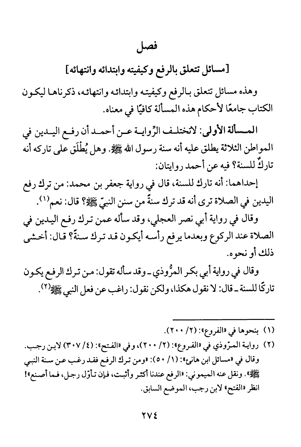 وهذه مسائل تتعلق بالرفع وكيفيته وابتدائه وانتهائه، ذكرناها ليكون
