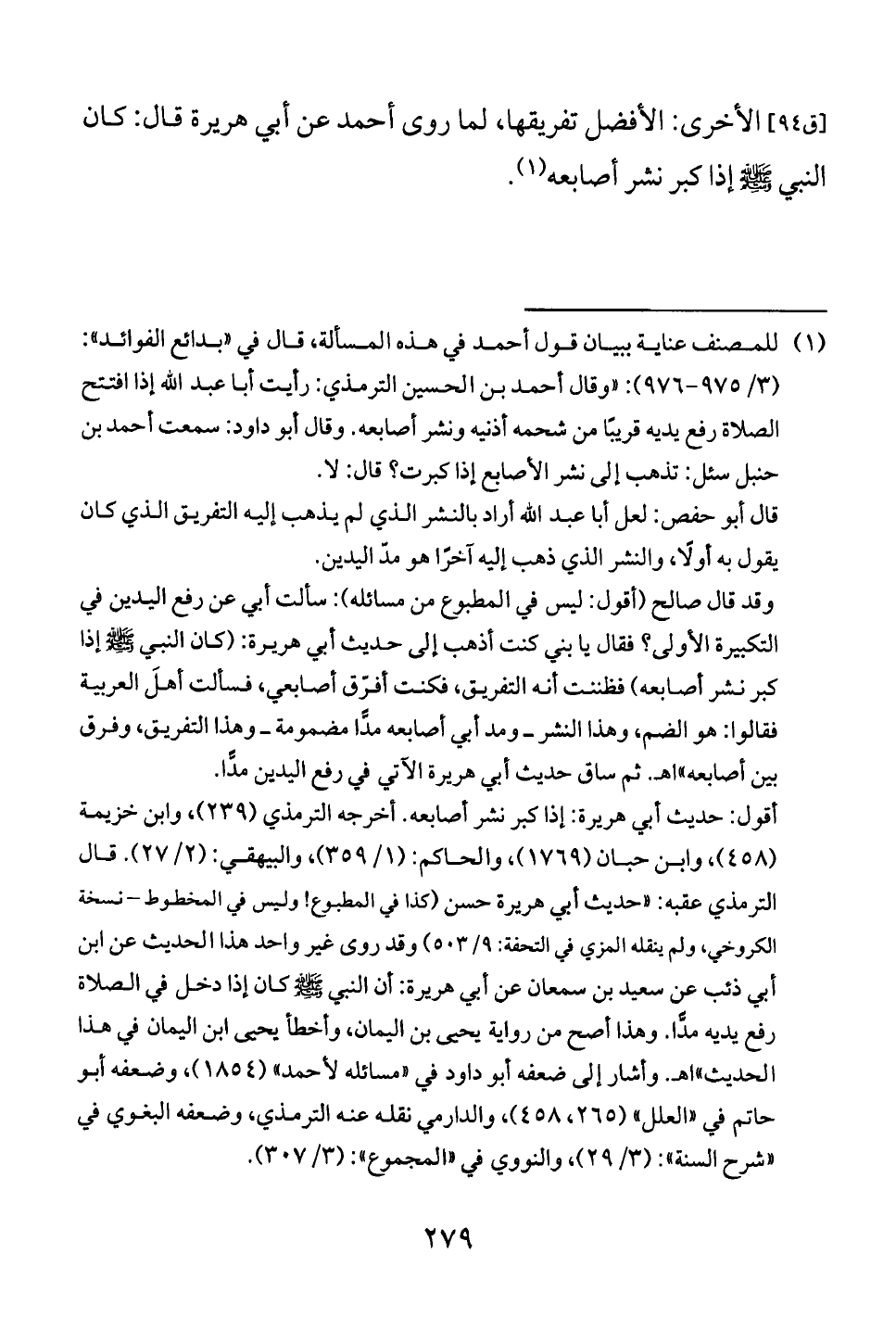النبي صَلَّى اللهُ عَلَيْهِ وَسَلَّمَ إذا كبر نشر أصابعه (1).
