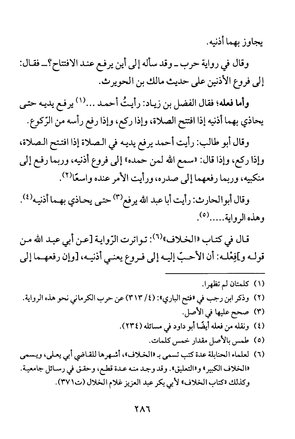 وقال أبو الحارث: رأيت أبا عبد الله يرفع (3) حتى يحاذي بهما أذنيه (4).