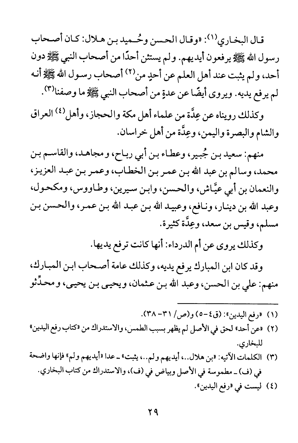 لم يرفع يديه. ويروى أيضًا عن عدةٍ من أصحاب النبي صَلَّى اللهُ عَلَيْهِ وَسَلَّمَ ما وصفنا (3).