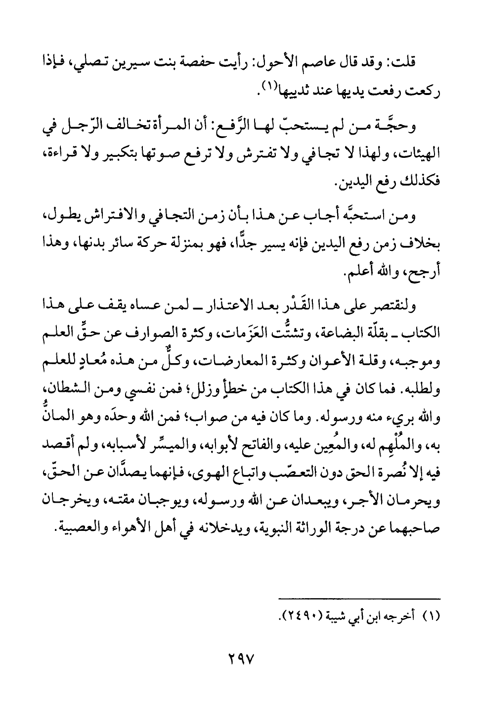 قلت: وقد قال عاصم الأحول: رأيت حفصة بنت سيرين تصلي، فإذا