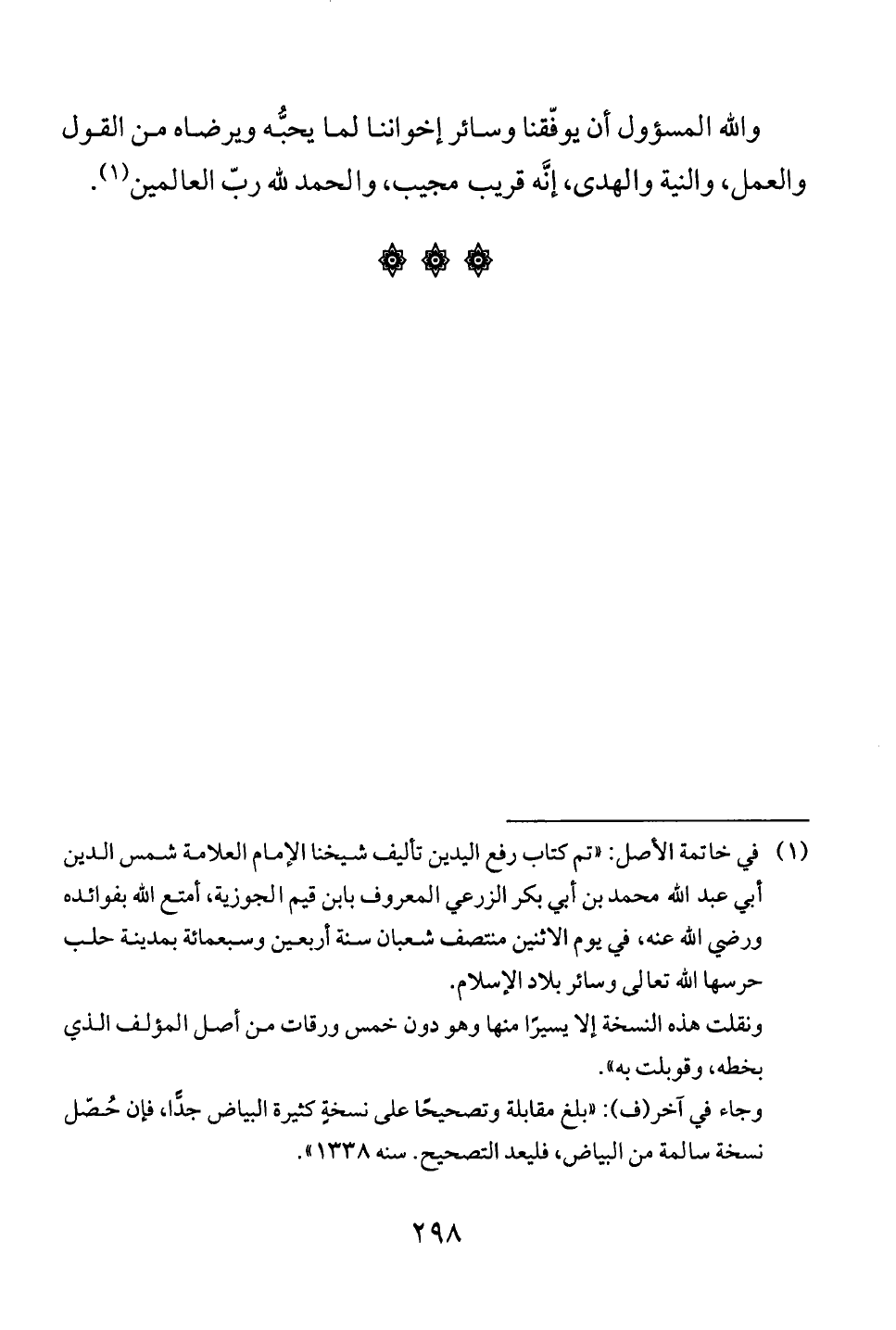 (1) في خاتمة الأصل: «تم كتاب رفع اليدين تأليف شيخنا الإمام العلامة شمس الدين