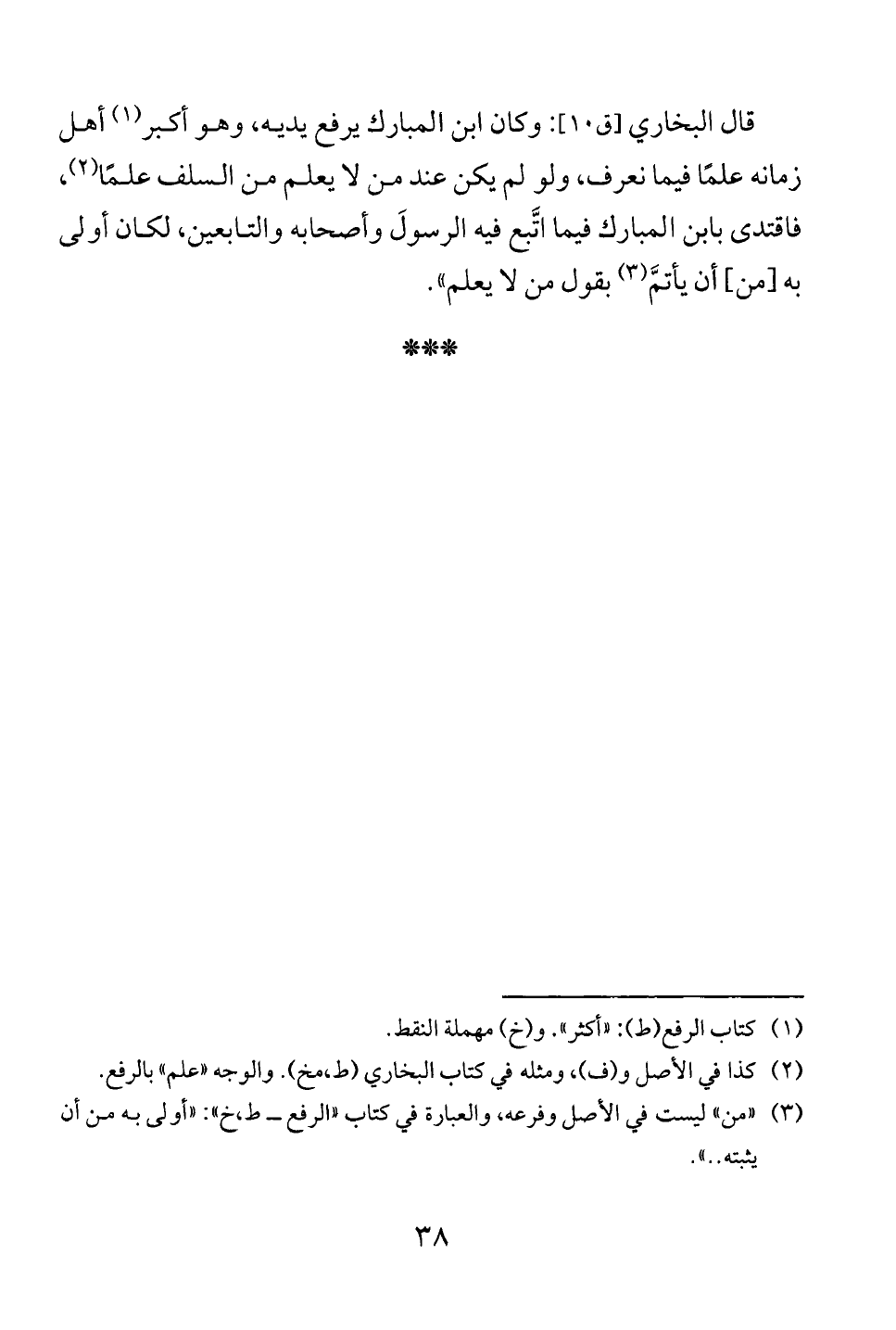 قال البخاري: وكان ابن المبارك يرفع يديه، وهو أكبر (1) أهل