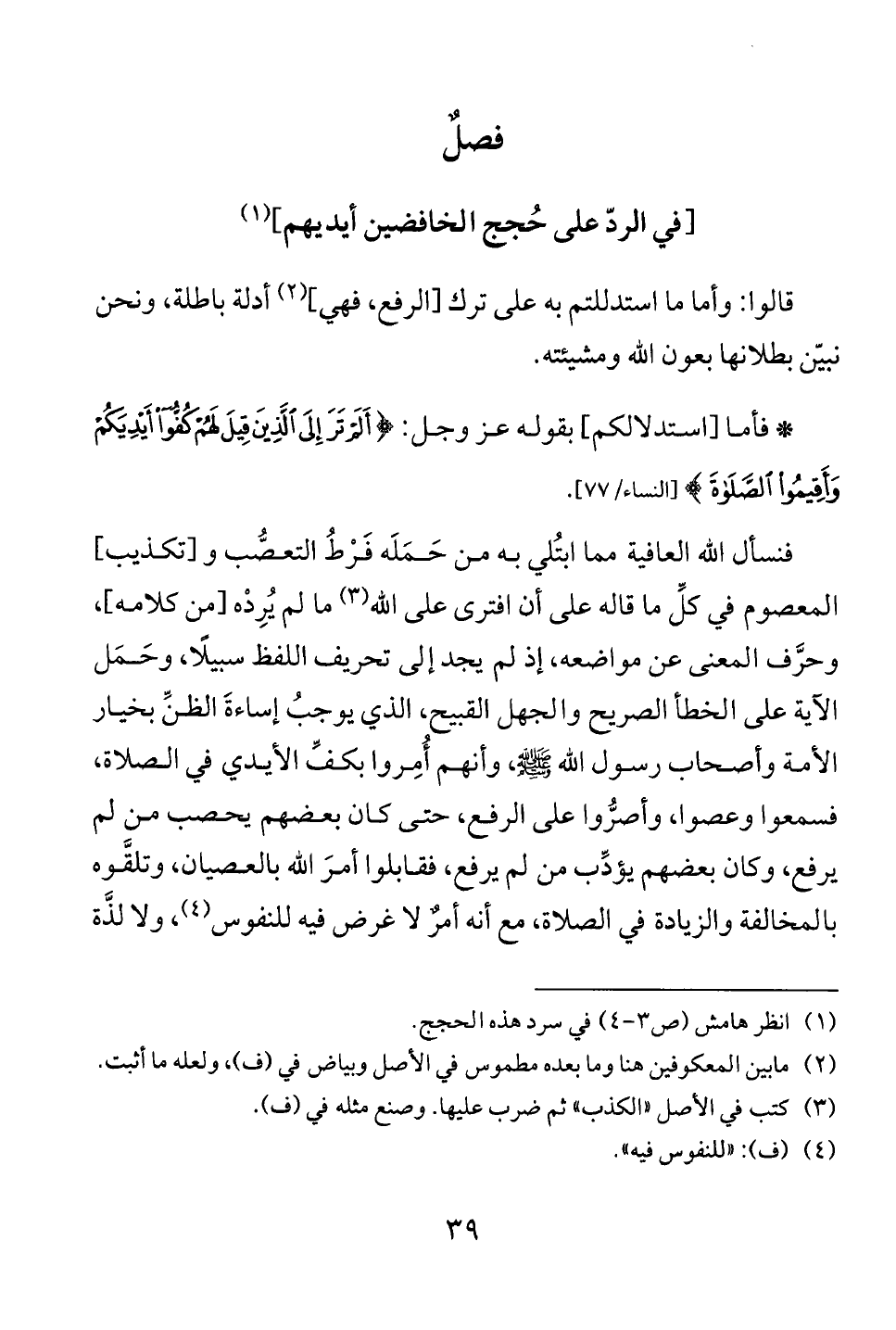[في الردّ على حُجج الخافضين أيديهم] (1)