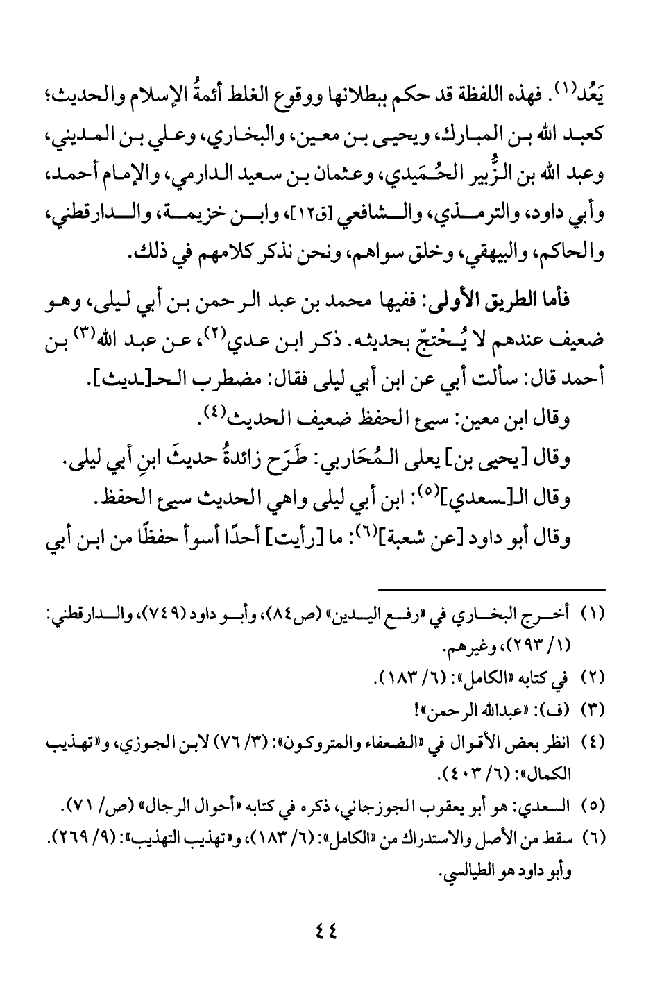 فأما الطريق الأولى: ففيها محمد بن عبد الرحمن بن أبي ليلى، وهو