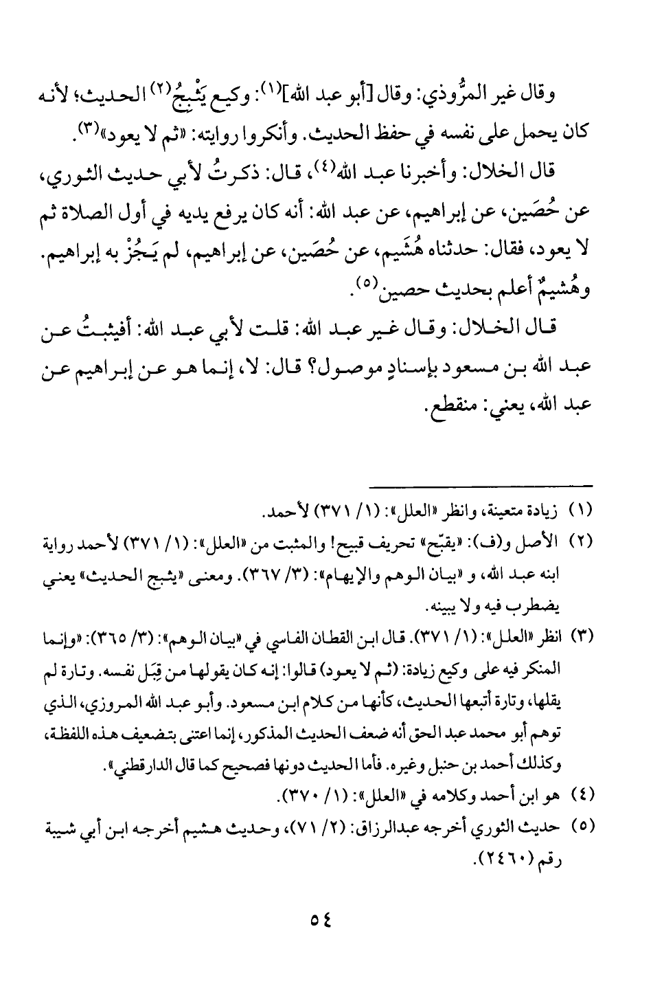 وهُشَيمٌ أعلم بحديث حصين (5).