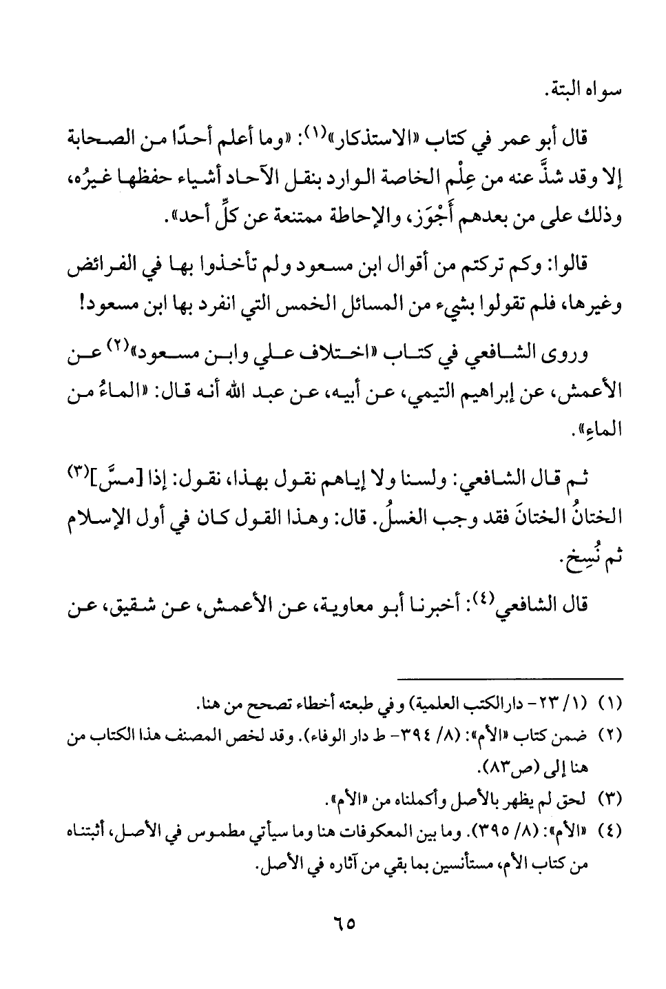 قال الشافعي (4): أخبرنا أبو معاوية، عن الأعمش، عن شقيق، عن