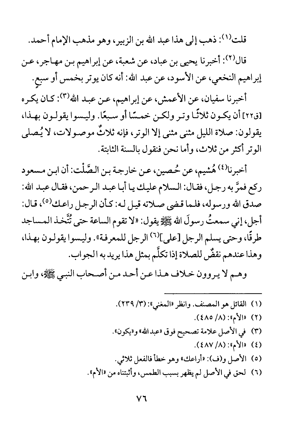 إبراهيم النخعي، عن الأسود، عن عبد الله: أنه كان يوتر بخمس أو سبعٍ.