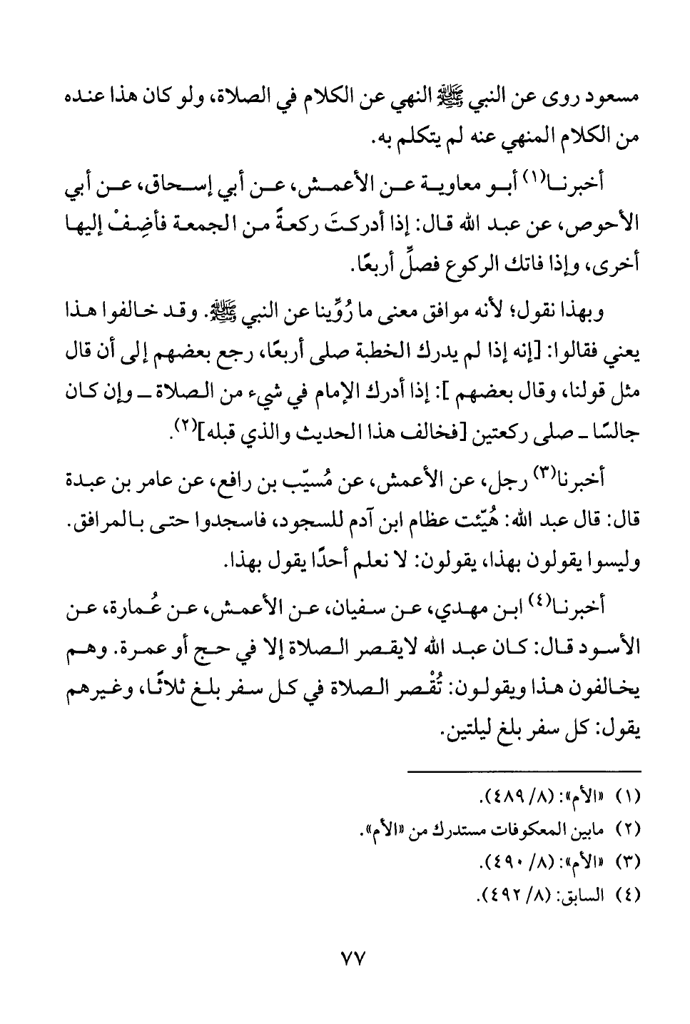 مسعود روى عن النبي صَلَّى اللهُ عَلَيْهِ وَسَلَّمَ النهي عن الكلام في الصلاة، ولو كان هذا عنده