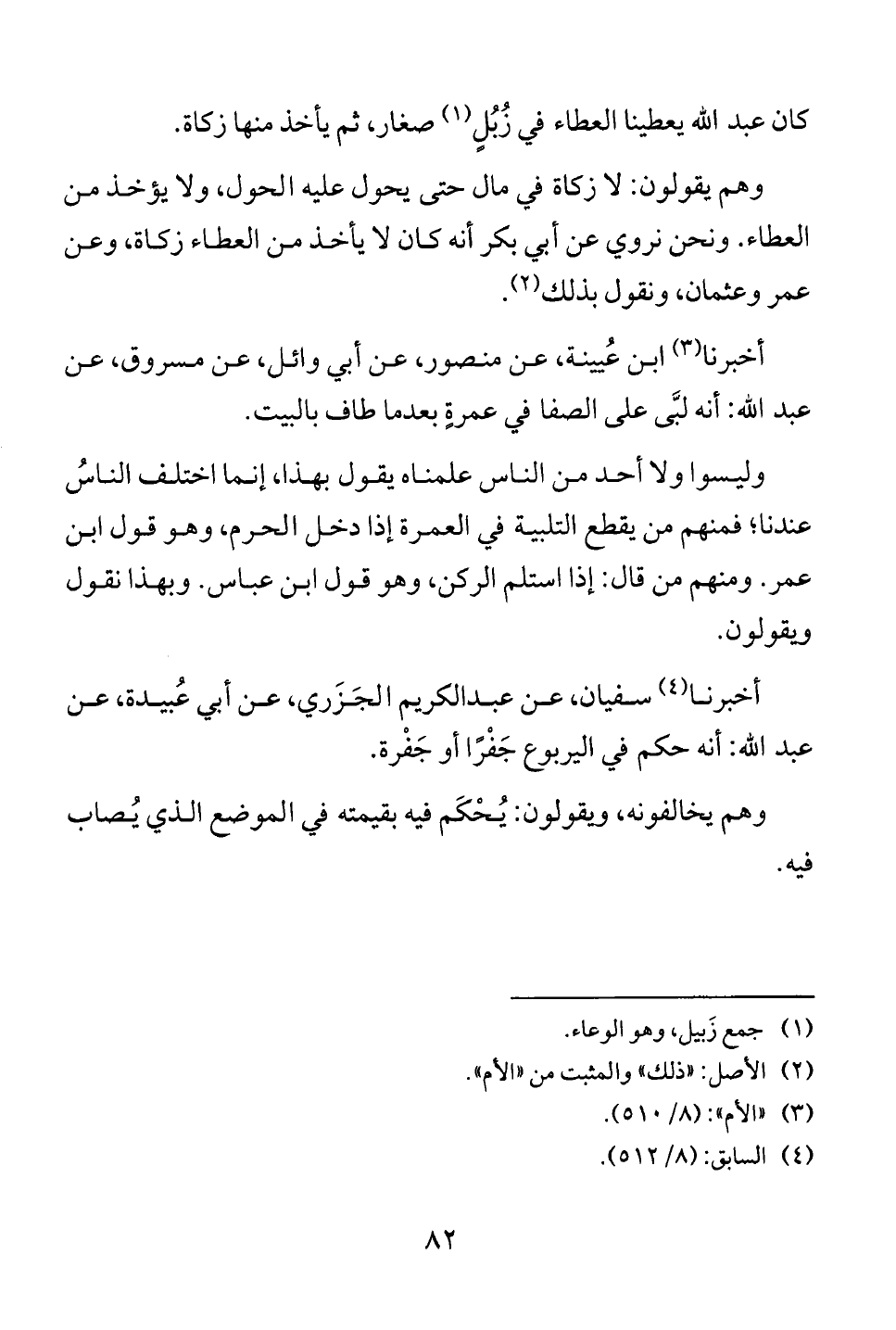 كان عبد الله يعطينا العطاء في زُبُلٍ (1) صغار، ثم يأخذ منها زكاة.
