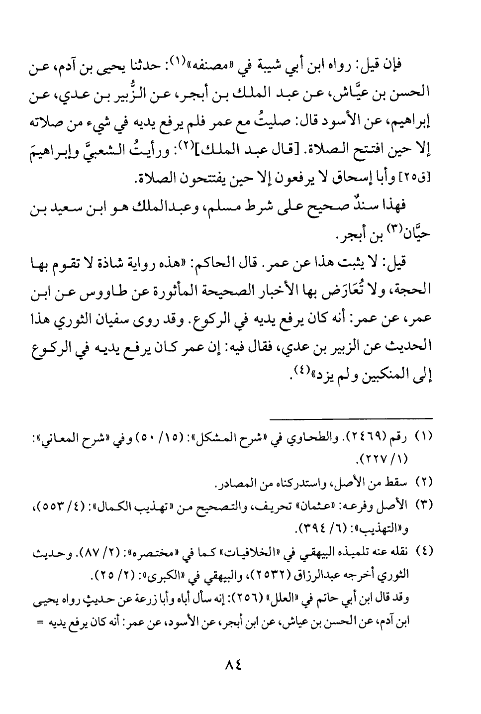 الحديث عن الزبير بن عدي، فقال فيه: إن عمر كان يرفع يديه في الركوع