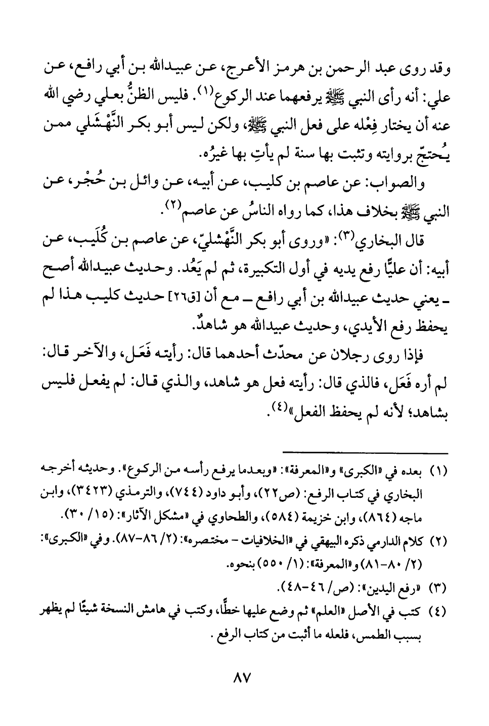 علي: أنه رأى النبي صَلَّى اللهُ عَلَيْهِ وَسَلَّمَ يرفعهما عند الركوع (1). فليس الظنُّ بعلي رضي الله