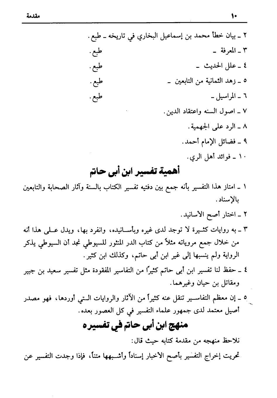 4- حفظ لنا تفسير ابن أبى حاتم كثيرا من التفاسير المفقودة مثل تفسير سعيد بن جبير ومقاتل بن حيان وغيرهما.