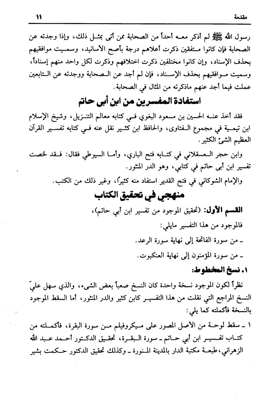 (تحقيق الموجود من تفسير ابن أبي حاتم) ، فالموجود من هذا التفسير ما يلي: