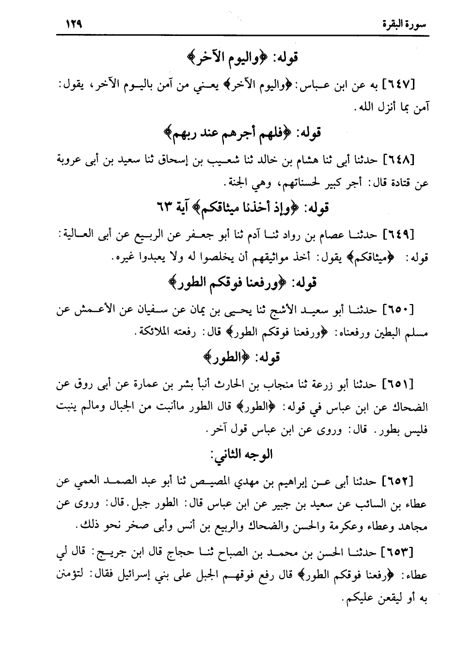 647 - بِهِ عَنِ ابْنِ عَبَّاسٍ: وَالْيَوْمِ الآخِرِ يَعْنِي مَنْ آمَنَ بِالْيَوْمِ الآخِرِ، يَقُولُ: