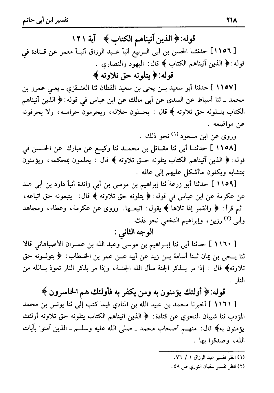 (1) . انظر تفسير عبد الرزاق 1/ 76.