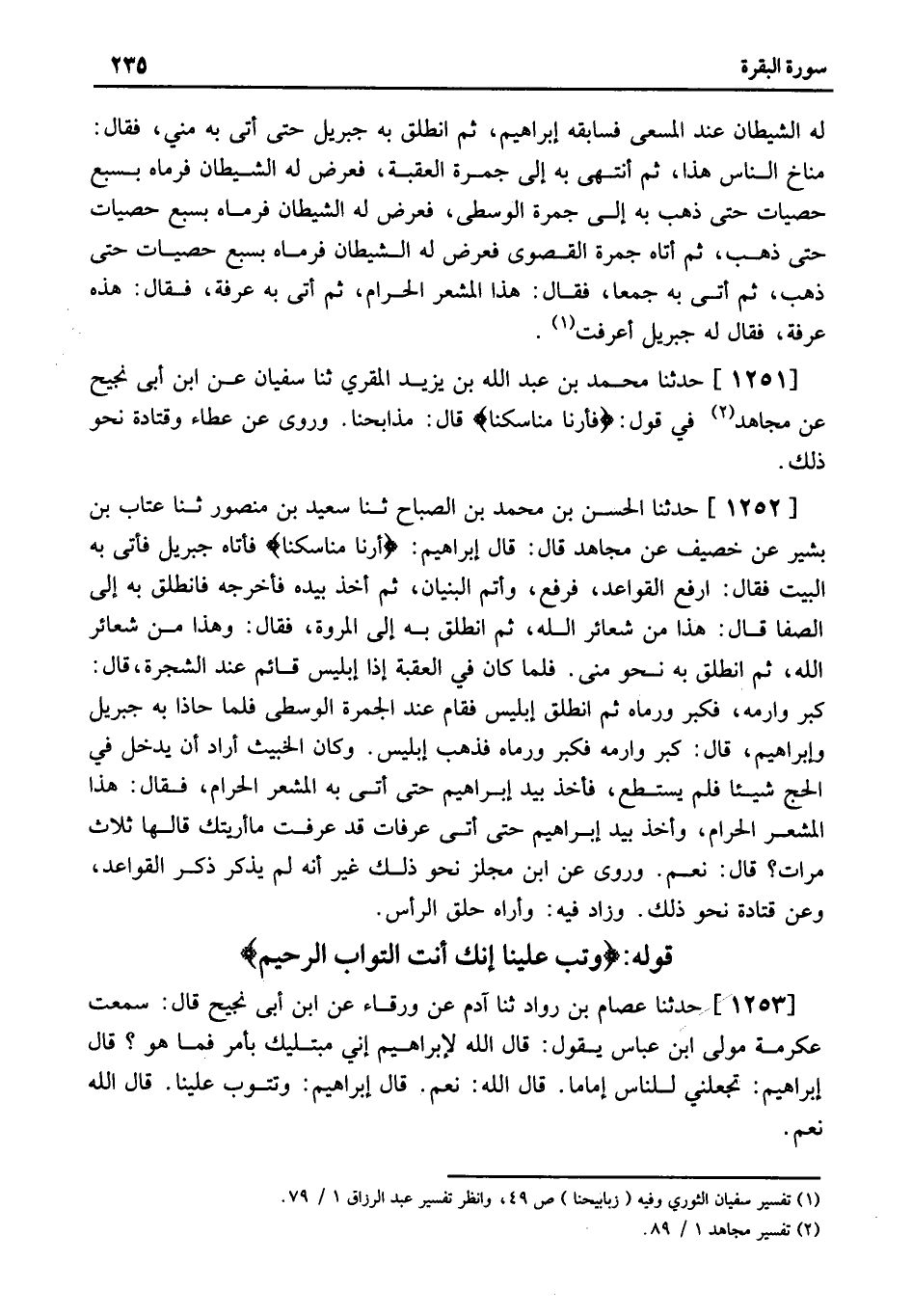 (1) . تفسير سفيان الثوري وفيه (زبابيحنا) ص 49، وانظر تفسير عبد الرزاق 1/ 79.