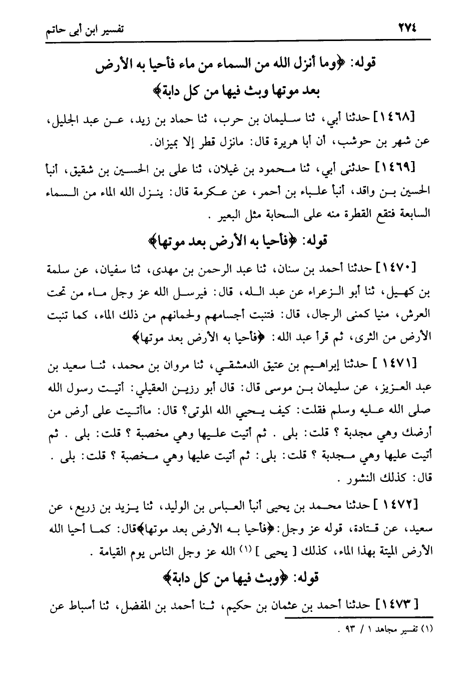 (1) . تفسير مجاهد 1/ 93.