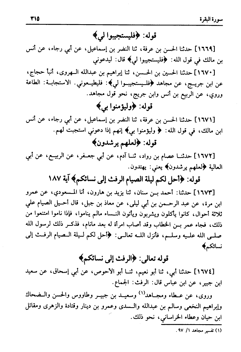 (1) . تفسير مجاهد 1/ 97.