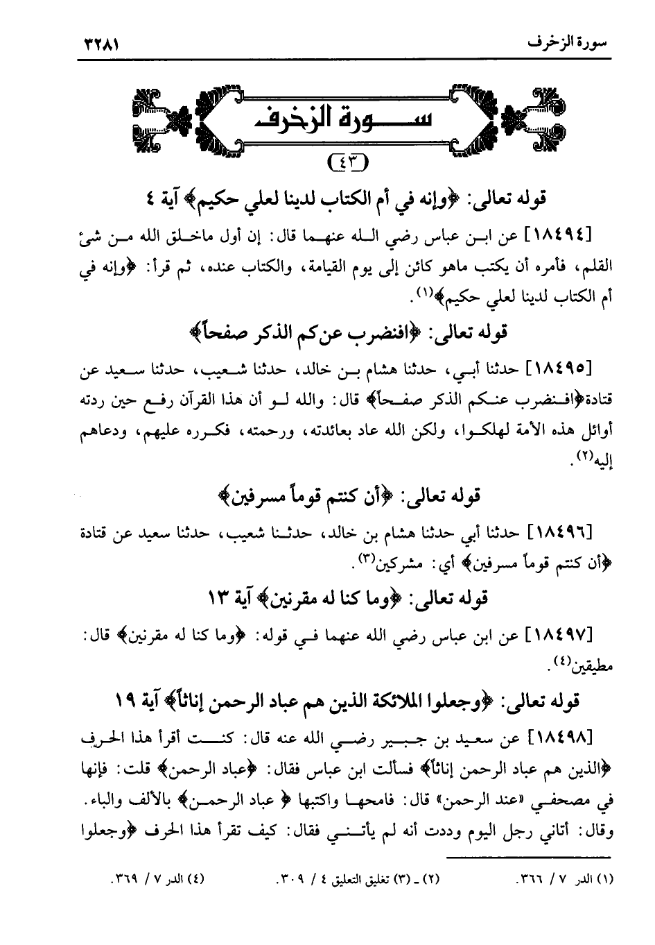 18496 - حَدَّثَنَا أبي حدثنا هشام بن خالد، حدثنا شُعَيْب، حَدَّثَنَا سَعِيد عن قَتَادَة أَن كُنتُمْ قَوْمًا مُّسْرِفِينَ أي: مشركين «3» .