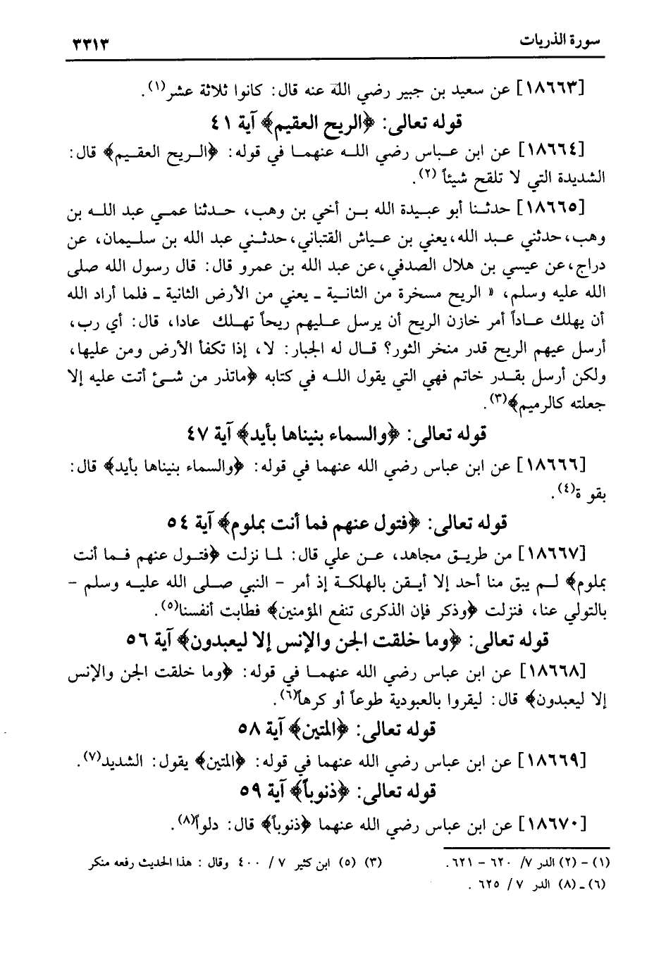 18669 - عَنِ ابن عباس رضي الله عنهما في قوله: الْمَتِينُ يَقُولُ: الشَّدِيدُ «7» .