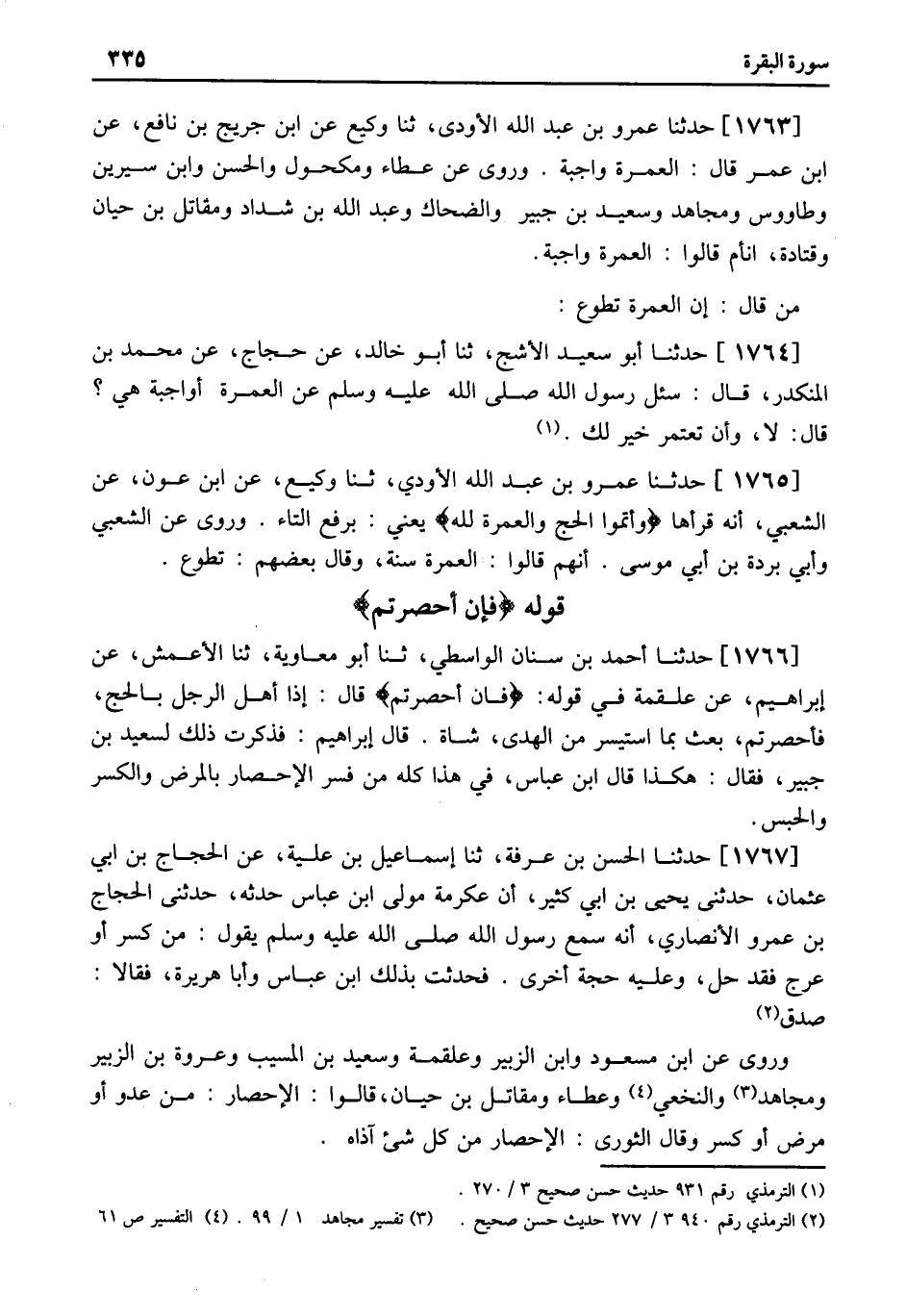1765 - حَدَّثَنَا عَمْرُو بْنُ عَبْدِ اللَّهِ الأَوْدِيُّ، ثنا وَكِيعٌ، عن ابْنِ عَوْنٍ، عَنِ الشَّعْبِيِّ، أَنَّهُ قَرَأَهَا وَأَتِمُّوا الْحَجَّ وَالْعُمْرَةُ لِلَّهِ يَعْنِي: بِرَفْعِ التَّاءِ.