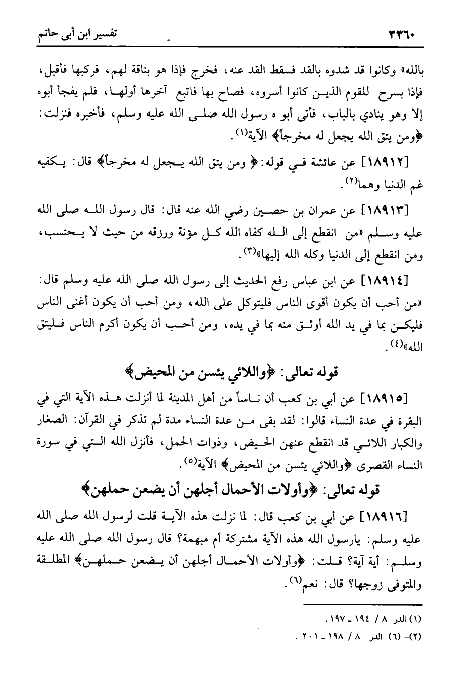 18916 - عَنْ أُبَيِّ بْنِ كَعْبٍ قَالَ: لَمَّا نَزَلَتْ هَذِهِ الْآيَةُ قُلْتُ لِرَسُولِ اللَّهِ صَلَّى اللَّهُ عَلَيْهِ وَسَلَّمَ: يَا رَسُولَ اللَّهِ هَذِهِ الْآيَةُ مُشْتَرِكَةٌ أَمْ مُبْهَمَةٌ؟ قَالَ رَسُولُ اللَّهِ صَلَّى اللَّهُ عَلَيْهِ وَسَلَّمَ: أَيَّةُ آيَةٍ؟ قُلْتُ: وَأُوْلاتُ الْأَحْمَالِ أَجَلُهُنَّ أَنْ يَضَعْنَ حملهن المطلقة والمتوفى زوجها؟ قال: نعم «6» .