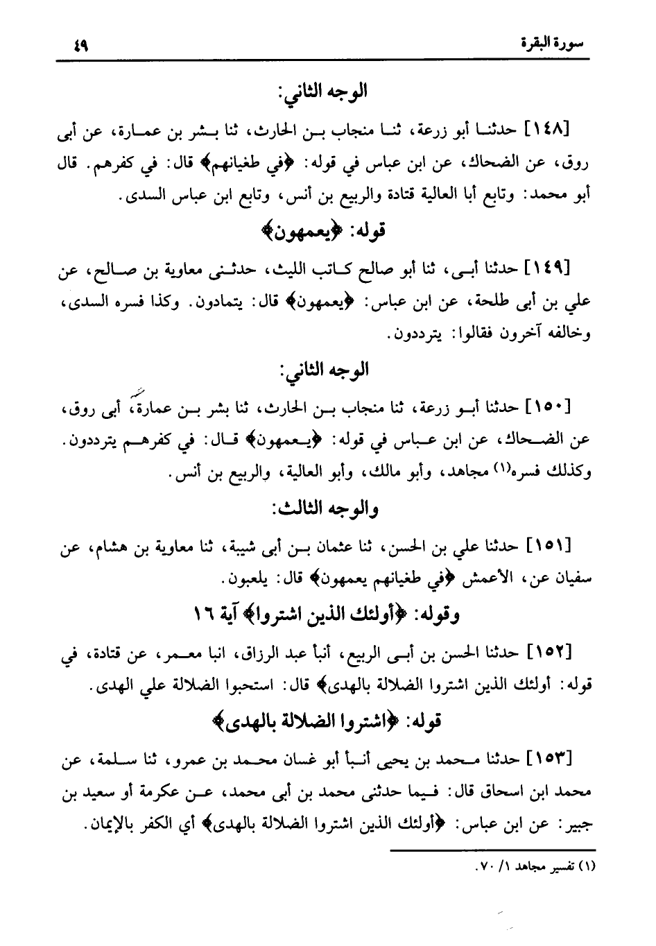 (1) . تفسير مجاهد 1/ 70.
