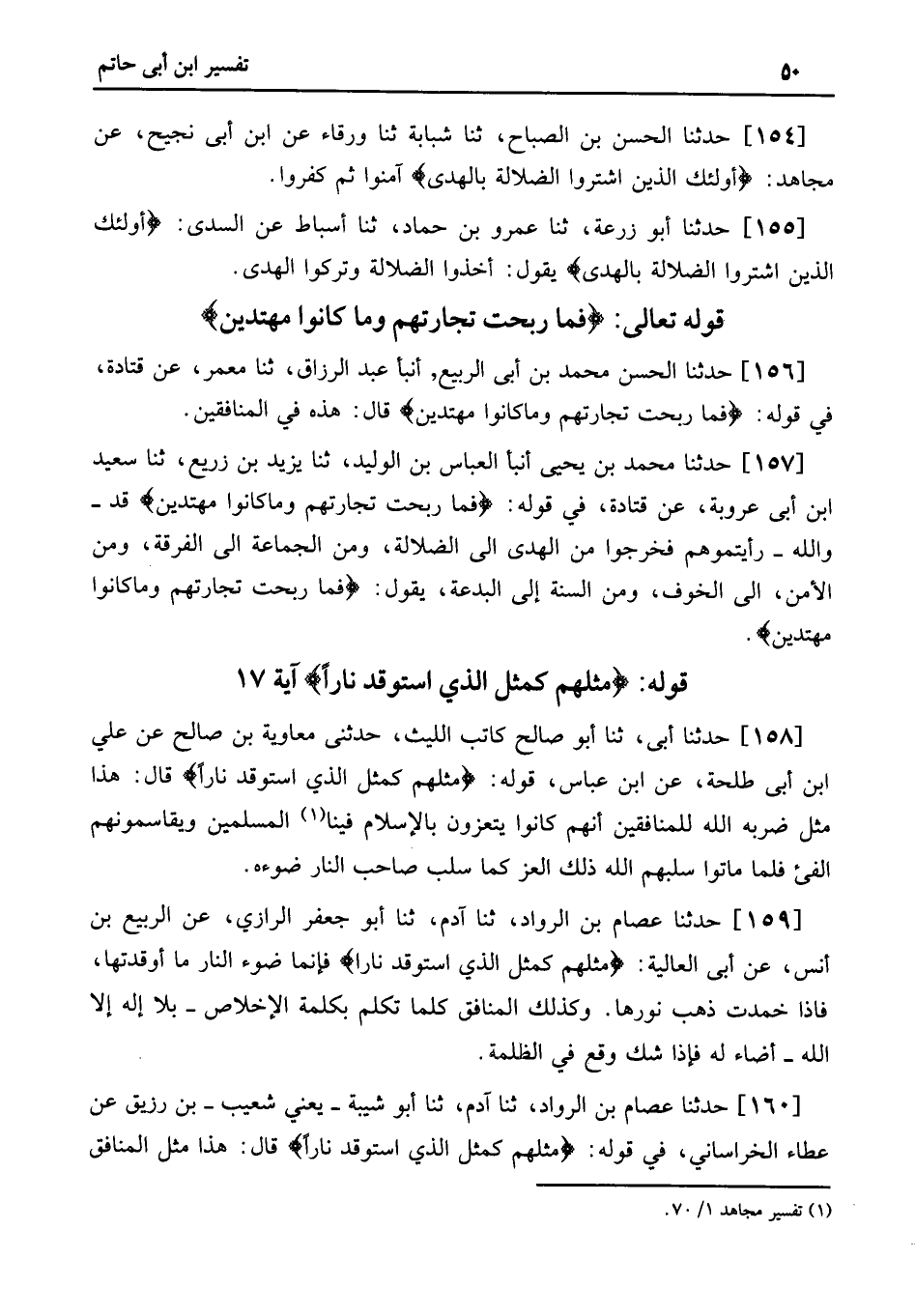 (1) . تفسير مجاهد 1/ 70.