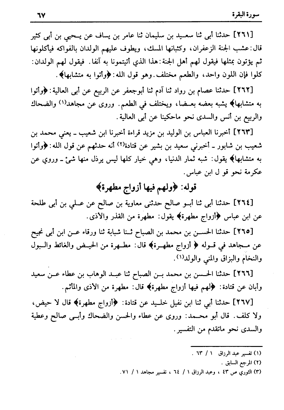 (3) . الثوري ص 43، وعبد الرزاق 1/ 64، تفسير مجاهد 1/ 71.