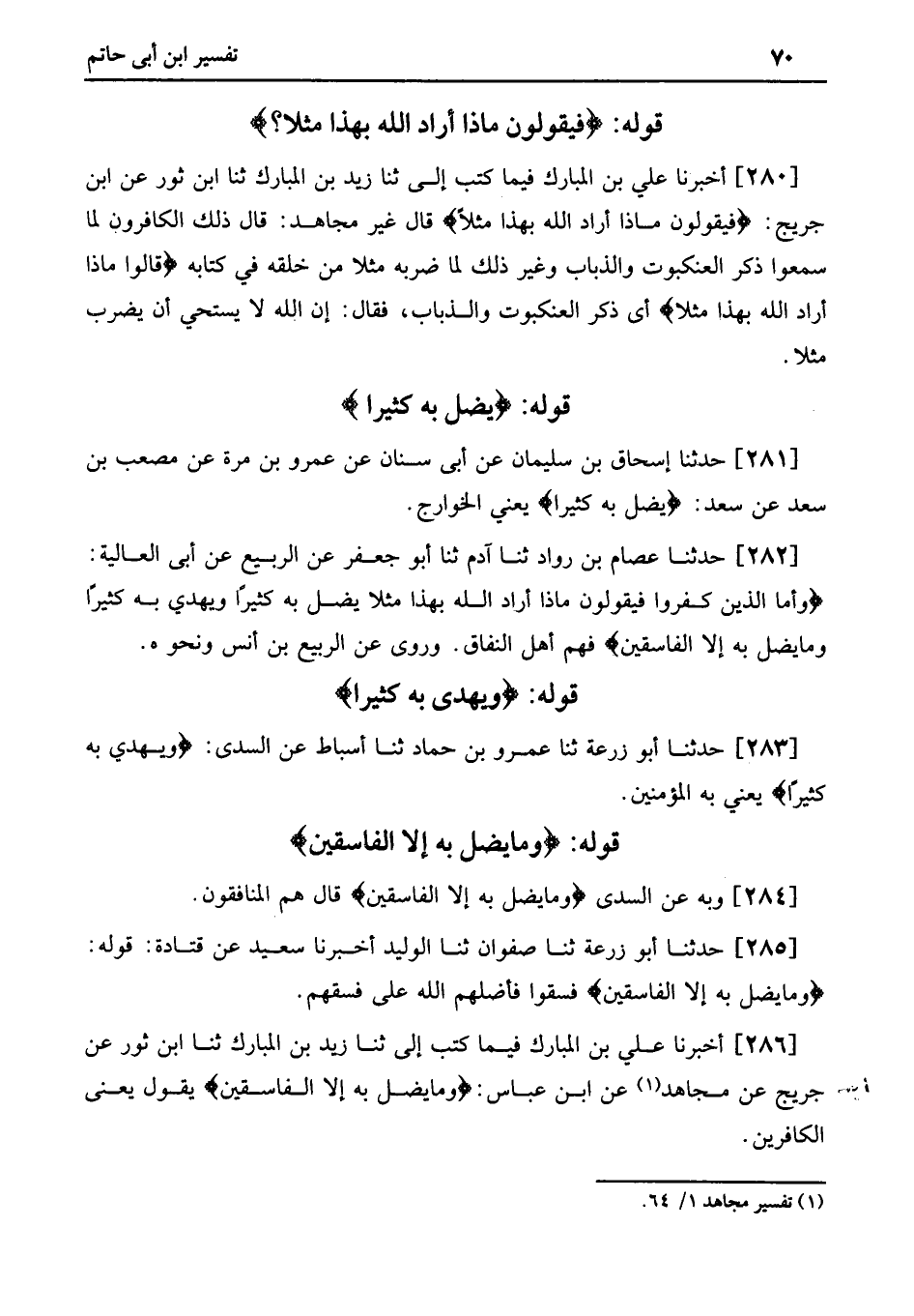 (1) . تفسير مجاهد 1/ 64.