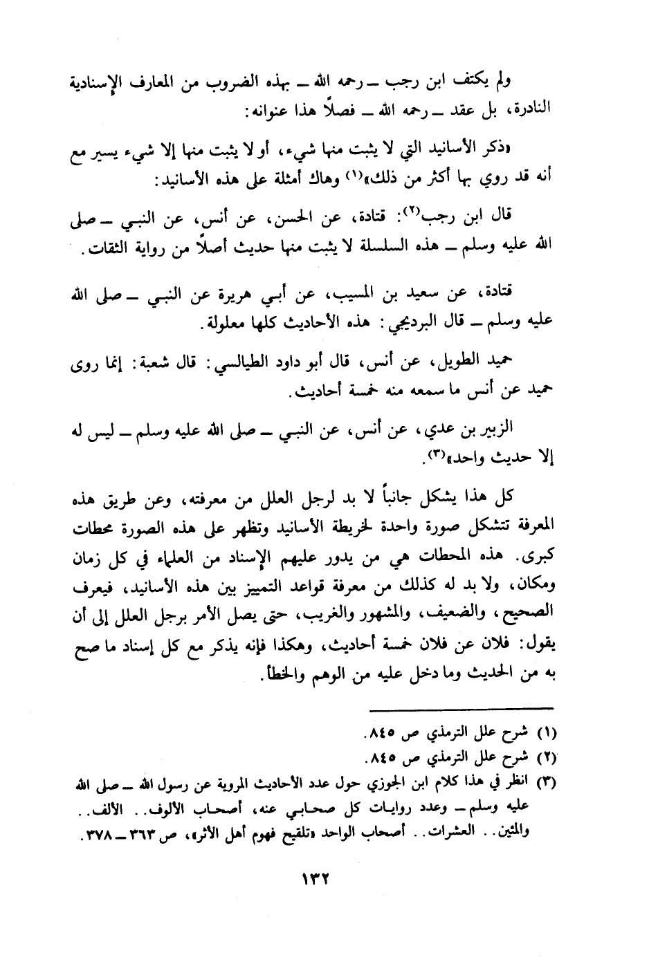 ولم يكتف ابن رجب - C - بهذه الضروب من المعارف الإسنادية النادرة، بل عقد - C - فصلا هذا عنوانه: