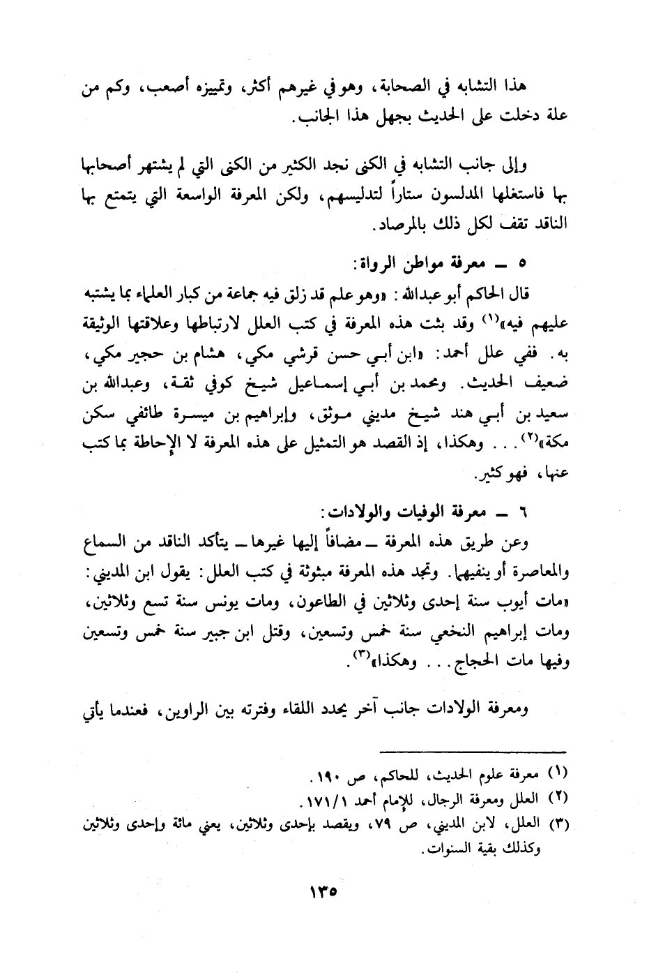 وعن طريق هذه المعرفة - مضافا إليها غيرها - يتأكد الناقد من السماع والمعاصرة أو ينفيهما. وتجد هذه المعرفة مبثوثة في كتب العلل: يقول ابن المديني: "مات أيوب سنة إحدى وثلاثين في الطاعون، ومات يونس سنة تسع وثلاثين، ومات إبراهيم النخعي سنة خمس وتسعين، وقتل ابن جبير سنة خمس وتسعين وفيها مات الحجاج ... وهكذا".