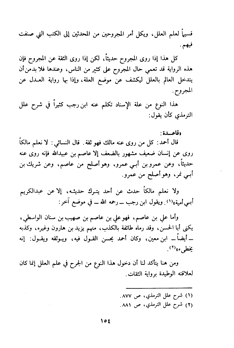 قسيما لعلم العلل، ويكل امر المجروحين من المحدثين إلى الكتب التي صنفت فيهم.