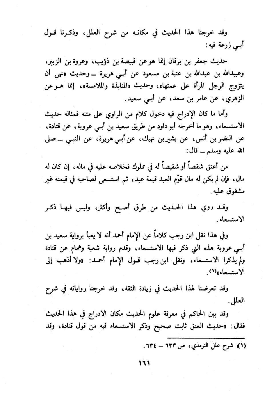 وقد تعرضنا لهذا الحديث في زيادة الثقة، وقد خرجنا رواياته في شرح العلل.