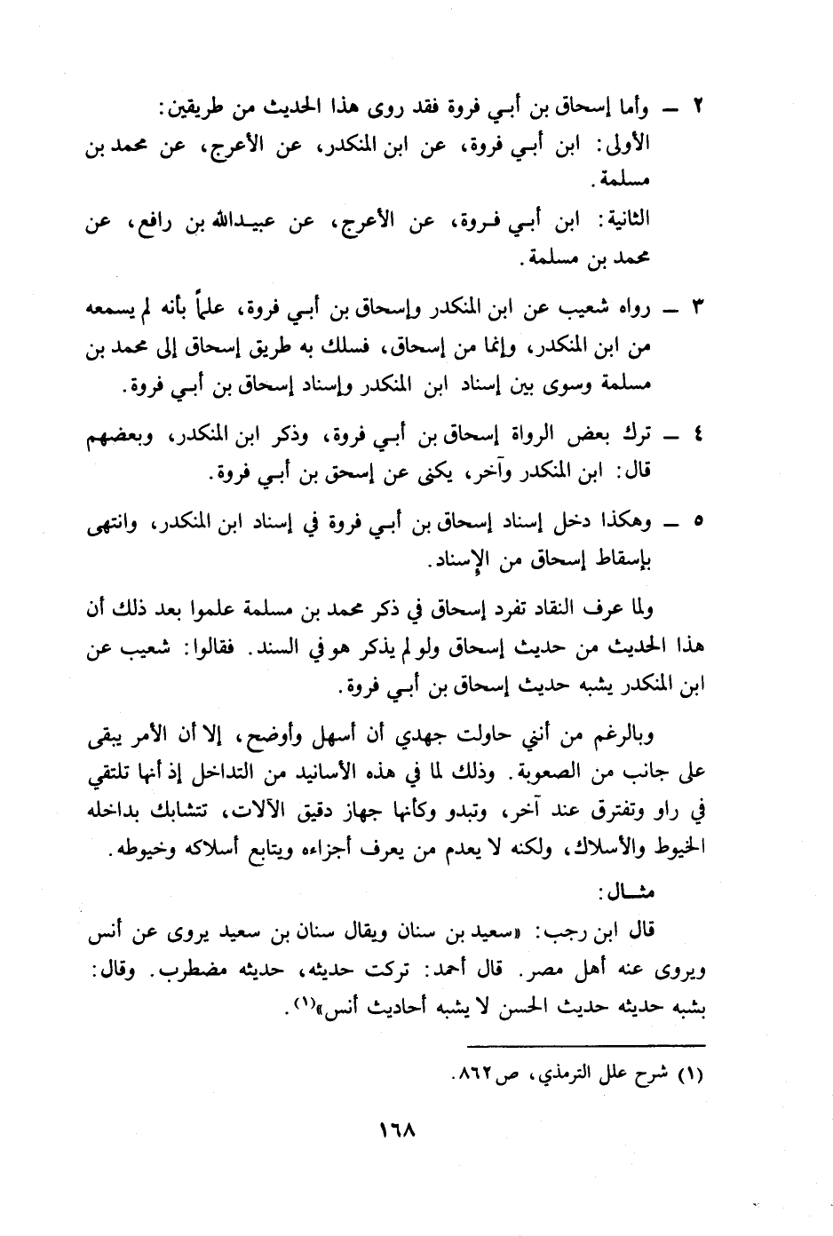 ولما عرف النقاد تفرد إسحاق في ذكر محمد بن مسلمة علموا بعد ذلك أن هذا الحديث من حديث إسحاق ولو لم يذكر هو في السند. فقالوا: شعيب عن ابن المنكدر يشبه حديث إسحاق بن أبي فروة.